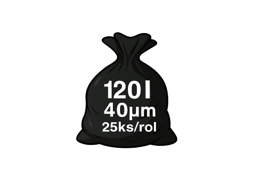 Základní pytel na odpad s velkým objemem 120 litrů, vyrobený z recyklovaného LDPE (nízkohustotní polyetylen). Díky rozměrům 700 × 1100 mm se hodí do větších odpadkových košů i pro samostatné použití. Barva dle vybrané varianty. Pytel je díky své pevnosti vhodný nejen na běžný směsný odpad, ale i na objemnější či těžší odpad.