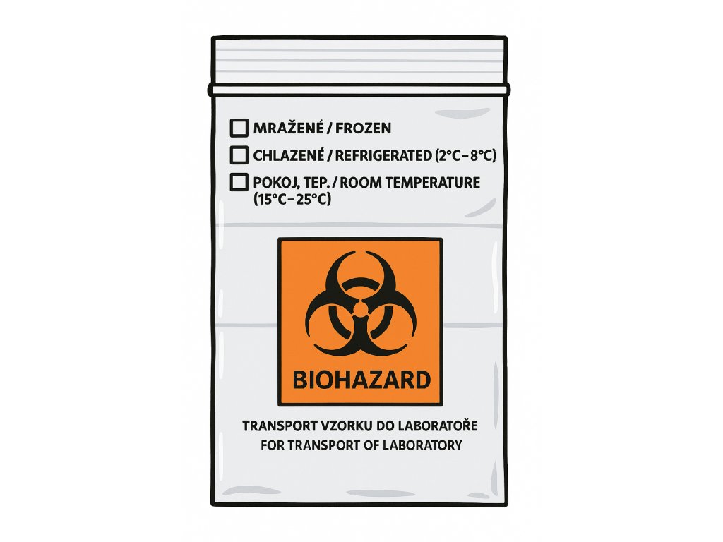 Dvoukomorový transportní sáček na krevní vzorky s potiskem BIOHAZARD